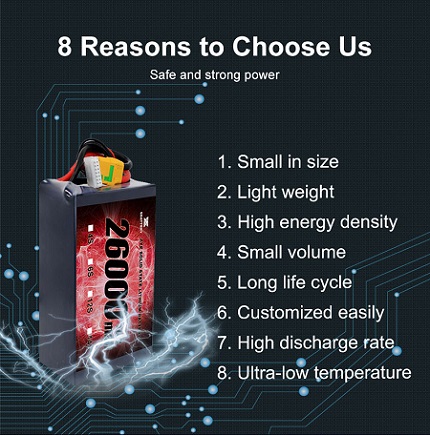 நிபுணத்துவம்: லித்தியம் பேட்டரி உற்பத்தியில் 10 ஆண்டுகளுக்கும் மேலான அனுபவம், மேம்பட்ட தயாரிப்புகள் உட்படஇலகுரக சாலிட்-ஸ்டேட் லித்தியம் பேட்டரி 32000 எம்ஏஎச் 30000 எம்ஏஎச் 5 சி 10 சி 2 எஸ் 3 எஸ் 4 எஸ் 5 எஸ் 6 எஸ் யுஏவிஎஸ் பேட்டரி பேக் தனிப்பயனாக்க எளிதானது, UAV பயன்பாடுகளில் உகந்த செயல்திறனுக்காக வடிவமைக்கப்பட்டுள்ளது.